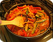 トマト・トマト缶・ハーブ・ローリエ・ドライハーブを加え30分ほど煮込み最後に塩・こしょうで味を整える。