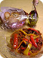 クルジェット・パプリカ・なすを串方にきる。なすはあく抜きのため水にさらしてから水を切っておく。 |